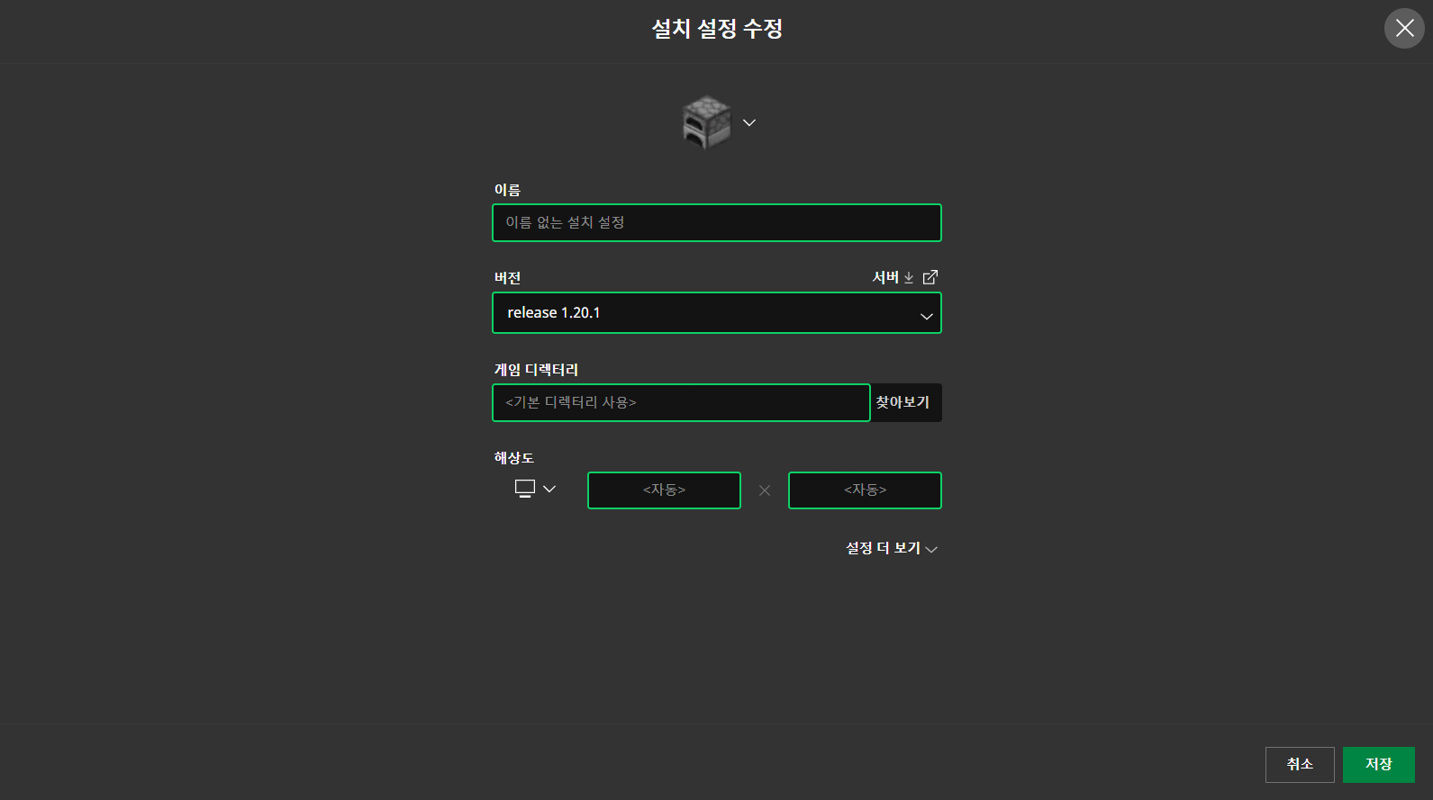 설치설정에 들어가서 플레이할 설치 설정 파일을 클릭합니다.