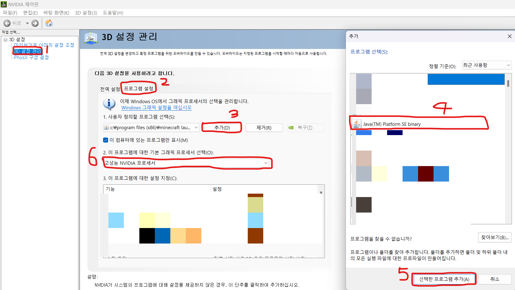 6.프로그램에 대한 기본 그래픽 프로세서를 '고성능 NVIDIA 프로세서'를 선택한다.